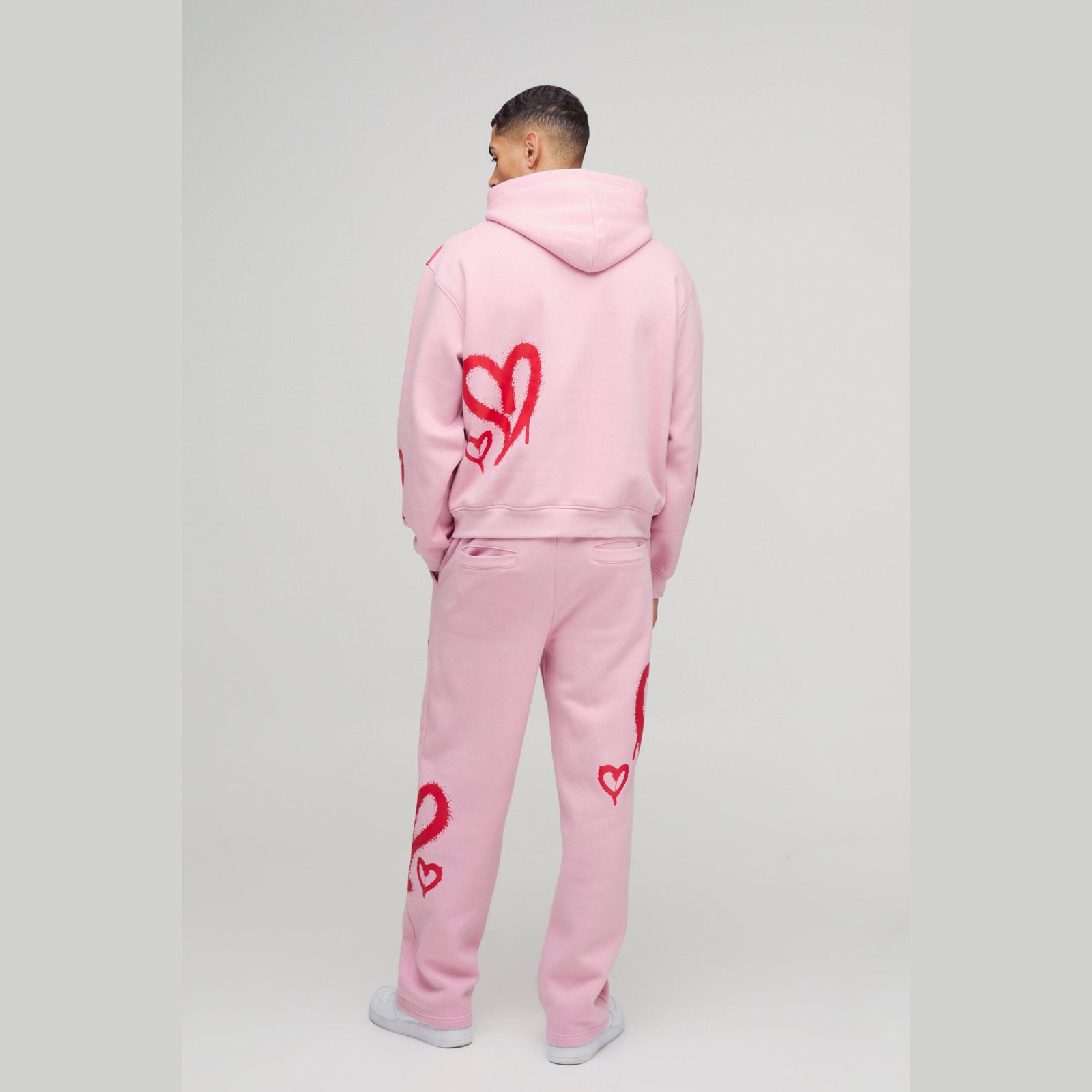 Oversized Boxy All Over Heart Printed Hooded Tracksuit